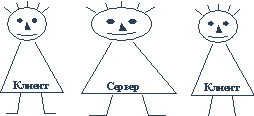 Другой идеей, позволяющей сократить сетевой трафик между компонентам клиент-серверной организации, является выделение дополнительного сервера (сервера приложений), на который перекладывается часть прикладной обработки и в котором, в свою очередь, может поддерживаться локальный кэш базы данных. Тогда клиенты взаимодействуют напрямую только с сервером (или несколькими серверами) приложений (естественно, что при этом могут использоваться протоколы более высокого уровня, чем при взаимодействии с сервером баз данных, и интенсивность этих взаимодействий может быть снижена), а сервер приложений по мере необходимости обращается к серверу баз данных (рисунок 9.4).