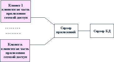 Рис. 9.4. Информационная система в архитектуре "клиент-сервер" с выделенным сервером приложений