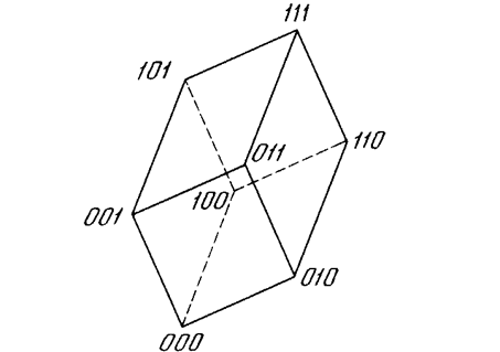 Рис. 6.2 б. Три нейрона порождают систему с восемью состояниями.