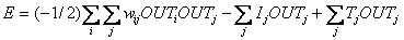 где Е - искусственная энергия сети; wij - вес от выхода нейрона i к входу нейрона j; OUTj - выход нейрона j; Ij - внешний вход нейрона j; Тj - порог нейрона j.