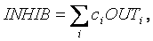 В данном случае OUT определяется отношением возбуждающих входов к тормозящим входам, а не их разностью. Таким образом, величина OUT ограничивается, если оба входа возрастают в одном и том же диапазоне X. Предположив, что это так, Е и I можно выразить следующим образом: