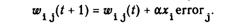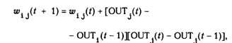 где wij(t) - сила синапса от нейрона i к нейрону j в момент времени t, OUTi(t) - выходной уровень пресинап-тического нейрона в момент времени t, OUTj(t) - выходной уровень постсинаптического нейрона в момент времени t.