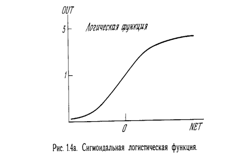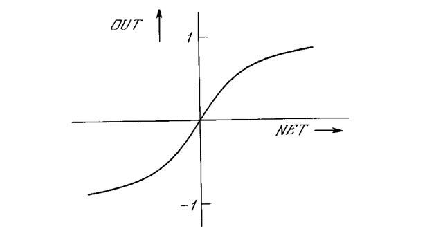 Подобно логистической функции гиперболический тангенс является S-образной функцией, но он симметричен относительно начала координат, и в точке NET = 0 значение выходного сигнала OUT равно нулю (см. рис. 1.46). В отличие от логистической функции гиперболический тангенс принимает значения различных знаков, что оказывается выгодным для ряда сетей (см. гл. 3). Рассмотренная простая модель искусственного нейрона игнорирует многие свойства своего биологического двойника. Например, она не принимает во внимание задержки во времени, которые воздействуют на динамику системы. Входные сигналы сразу же порождают выходной сигнал. И, что более важно, она не учитывает воздействий функции частотной модуляции или синхронизирующей функции биологического нейрона, которые ряд исследователей считают решающими.