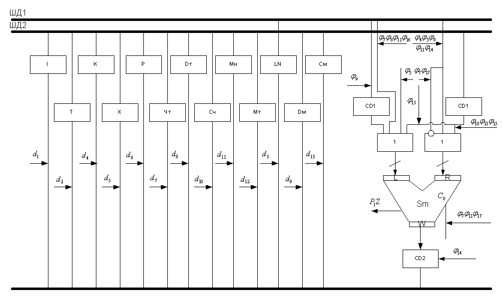 На основании полученных выше данных построим обобщенную схему операционного автомата. (Рис. 5).
