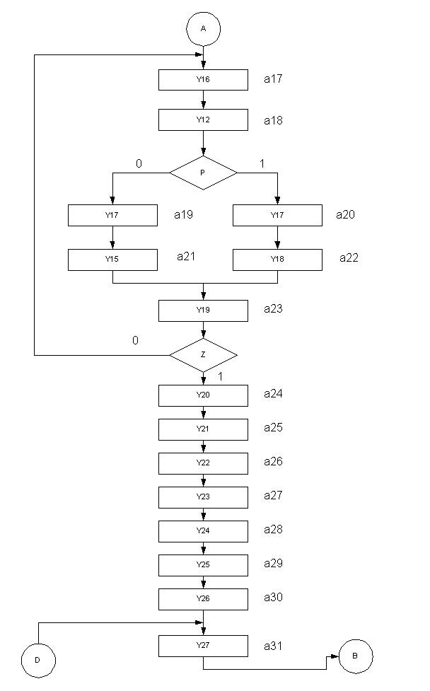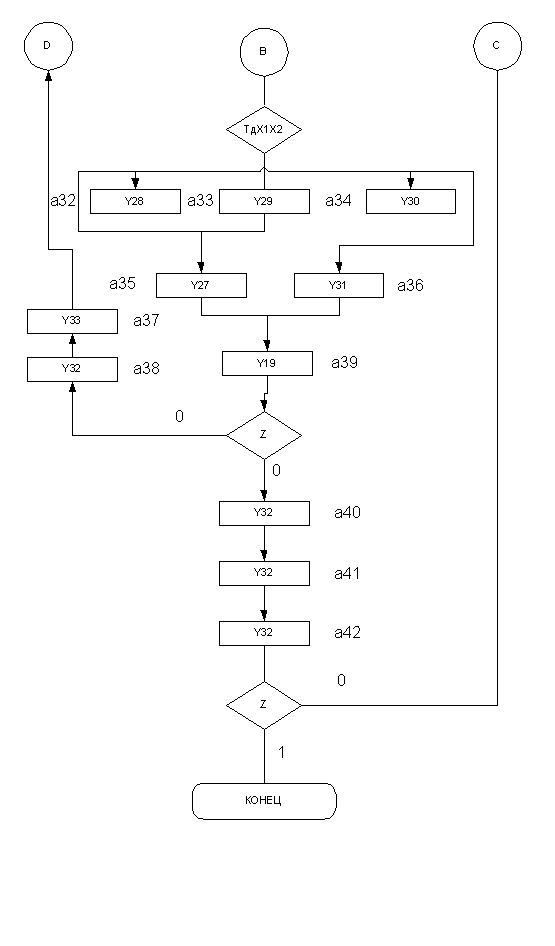 При синтезе управляющего автомата условимся о следующих допущениях – комбинаторный сумматор, использованный при синтезе операционного автомата формирует следующие признаки:
