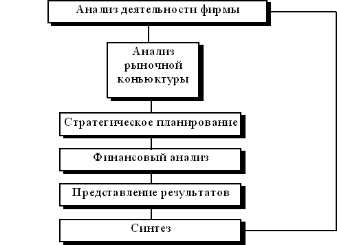Как видно из схемы, прежде всего необходимо проанализировать деятельность предприятия, чтобы выявить возможность или невозможность производства данного товара. В случае, если производство невозможно, необходима аренда или покупка оборудования, привлечение новых ресурсов или переориентация на другой продукт. Если же производство возможно в данных условиях, то встает вопрос об анализе сектора рынка, в который войдет продукт. Далее идет процесс непосредственно планирования. Он начинается с выбора общей стратегии действий.