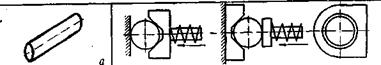 Ориентация по одной наружной цилиндрической поверхности может производиться либо в призмах, либо по габариту. В этом случае ориентацию по оси (в центрах) или по торцам (в чашках) приходится отбросить, так как концы валика должны быть свободны для ввода его в соединение.