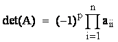 После завершения преобразования матрицы, определитель вычисляется по формуле: