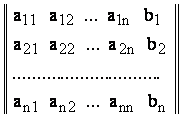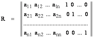 Пусть имеем матрицу A вида (2.1.1) и пусть B – единичная диагональная матрица такого же размера. Создадим рабочую матрицу R размером N´2N просто присоединив матрицу B справа к матрице A :