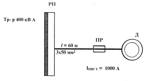Принимаем, что питание от распределительного пункта выполнено кабелем с алюминиевыми жилами 3 х 50 мм2.