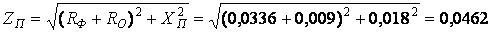- модуль полного сопротивления обмоток трансформатора, равный 0,042 Ом;