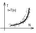 Анализ по методу наименьших квадратов заключается в определении параметров кривой, описывающих связь между некоторым числом N пар значений Xi, Yi (в данном случае n и t соответственно), обеспечивая при этом наименьшую среднеквадратичную погрешность. Графически эту задачу можно представить следующим образом – в облаке точек Xi, Yi плоскости XY (смотри рисунок) требуется провести прямую так, чтобы величина всех отклонений отвечала условию: