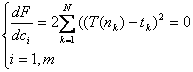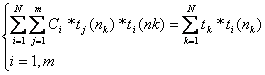 Положим Аij=(ti, tj) и B=(ti,TikTak) => мы получили систему уравнений AX=B, где Х=С. Формирование в матрице столбцов А и столбцов В записывается очень легко используя любой алгоритмический язык. После заполнения матрицы её остаётся решить и вывести решения этой задачи. Решение производиться методом Жордана.