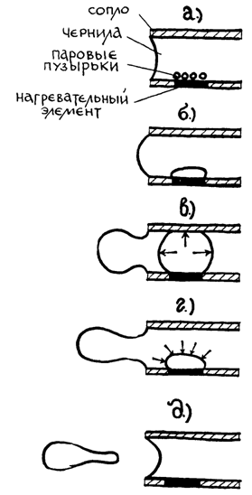 Итак, большинство современных чернильных принтеров используют технологию Drop-on-demand, которая основана на дискретном выпрыскивании капель чернил на бумагу из сопел печатающей головки. В настоящее время на практике для нанесения чернил на бумагу наиболее широко используется два дискретных метода. Различают так называемые Bubble-Jet-nphhtepbl и принтеры, использующие для управления соплом пье-зозлемент. Надо сказать, что при технической реализации оба этих метода практически эквивалентны, как по затратам, так и по качеству получаемого изображения.