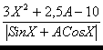 , где X=Sin2 |Z|+0.5Z ; A=2CosZ+1/(SinZ+2), где Z любое