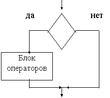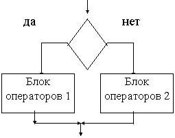 Работа оператора: в зависимости от того выполняется или не выполняется условие (условие - логическое выражение, которое может содержать знаки сравнения и логические операции). Если условие истинно, то выполняется блок операторов 1, если условие ложно, то выполняется блок операторов 2.