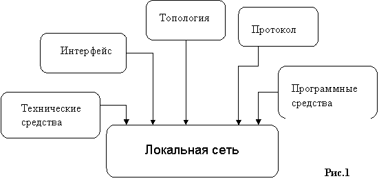 Конечно, компьютерная сеть может состоять и из двух компьютеров, но, как правило, их число в сети существенно больше. При этом компьютерная сеть не является простым объединением компьютеров, а представляет собой достаточно сложную систему. Любая компьютерная сеть характеризуется (рис. 1) топологией, протоколами, интерфейсами, сетевыми техническими и программными средствами.
