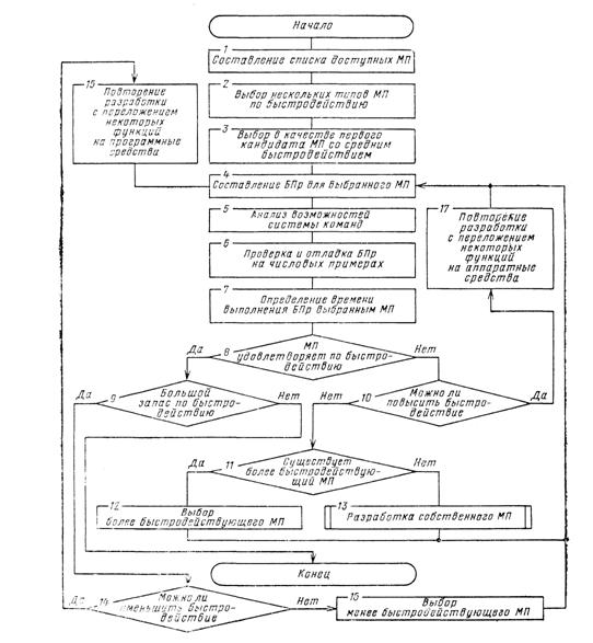 Важным достоинством выбора МП на основе БПр является то, что она не только определяет время решения задачи на конкретном MП, но и вскрывает достоинства и недостатки его системы команд для заданной области применений. Если проверка правильности составления БПр на конкретных числовых примерах покажет, что БПр не дает удовлетворительных временных показателей ее выполнения, следует использовать один из следующих подходов: