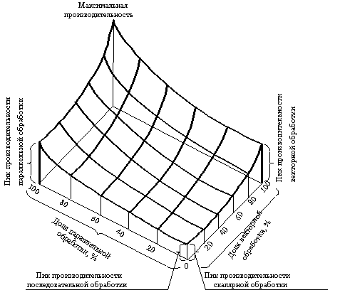 Рис. 5.4. Взаимосвязь между векторной, параллельной и скалярной производительностью ММПС