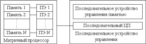 Обобщенный матричный процессор состоит из скалярной последовательной части и направленного массива процессорных элементов (ПЭ) (рис.5.9).