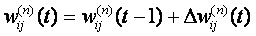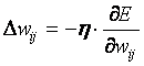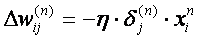 Обучение нейросети производится методом градиентного спуска, т.е. на каждой итерации изменение веса производится по формуле