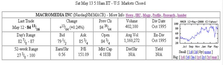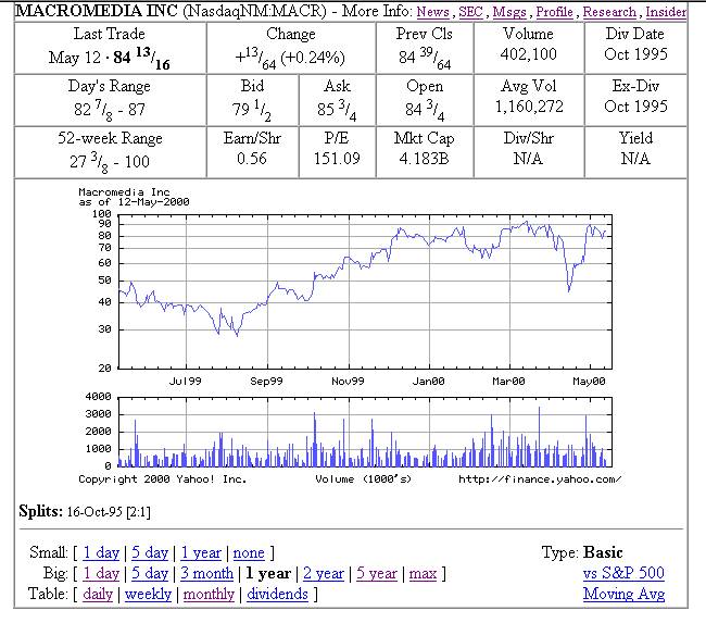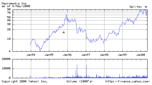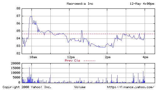Сан-Франциско, 26 апреля 2000 – Macromedia (NASDAQ MACR) объявлен рост % доходов. Доходы за четвертый квартал по сравнению с этим же периодом год назад выросли с $45,780,000 до $89,282,000. По индексу income* для этого же квартала оборотный капитал (исключая безналичные расчеты) на акциях составил $0,22 на акцию, что составило $12,547,000 по сравнению с $0,08 и $3,926,000 соответственно в прошлом году.