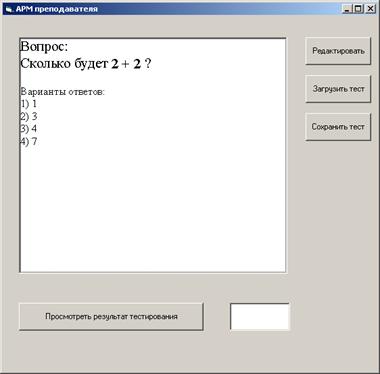 Для начала приведем текст программы АРМ преподавателя без использования защиты. На рисунке 8 показан ее пользовательский интерфейс.