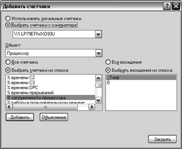 Если не уверены в своем понимании назначения какого-либо счетчика (это достаточно вероятно, поскольку счетчиков очень и очень много), выберите его в списке и нажмите кнопку Объяснение (Explain). На экране появится краткий комментарий к данному счетчику.