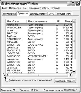 Рисунок 2.8 - Флажок «Отображать процессы всех пользователей»