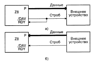Рис. 1.12. Стробируемый ввод/вывод а) вывод; б) ввод.
