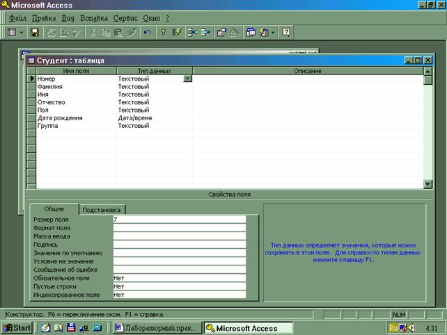 Лабораторный практикум по СУБД Access 97Рефераты >> Программирование и компьютеры >> Лабораторный практикум по СУБД Access 97