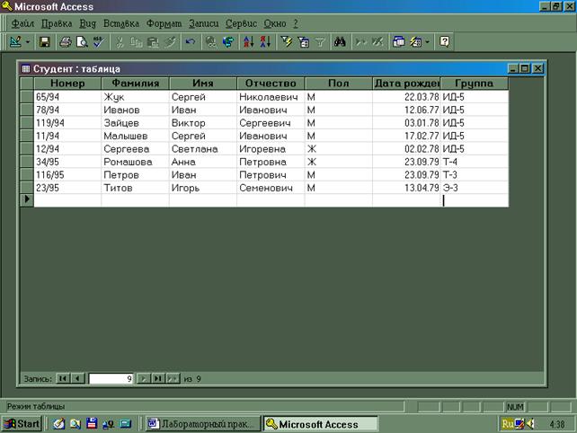 - Введите данные по вашей группе в таблицу СТУДЕНТ, созданную в предыдущем задании.