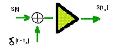 Итак, если непрерывную функцию умножить на дельта-функцию и произведение проинтегрировать по времени, то результат будет равен значению непрерывной функции в той точке, где сосредоточен d - импульс. Принято говорить, что в этом состоит фильтрующее свойство дельта-функции.[3]