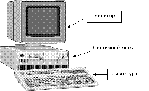 Системный блок, клавиатура и монитор вместе составляют персональный компьютер в минимальной конфигурации, т.е. позволяют работать с информацией на компьютере (рис 1).