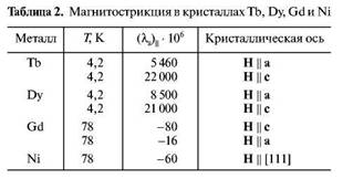 Анализ приведенных результатов измерений показал, что за гигантскую магнитострикцию в Tb и Dy ответственны два механизма: одноионная маг-нитострикция и обменная магнитострикция (возникающая вдоль оси c, так как в этом направлении обменное взаимодействие сильно зависит от межатомного расстояния).