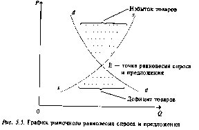 Под равновесной ценой – понимается цена, по которой потребитель желает купить, а товаропроизводитель желает продать одно и то же количество товаров Q = E.