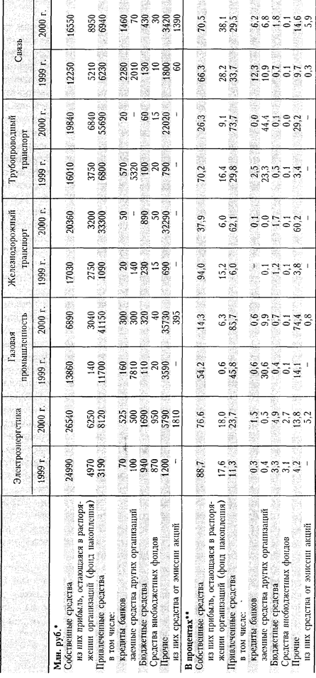 Источники финансирования инвестиций в основной капитал по крупным и средним предприятиям отраслей естественных монополий в России в 1999—2000 гг.