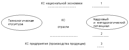 Здесь следует принимать во внимание параметры, определенные в микроэкономических методиках, используемых в сфере управления предприятиями. Можно утверждать, что применительно к товару конкурентоспособность является развитием категории качества. В случае активных экономических объектов - предприятий и организаций, представленных на рынке - конкурентоспособность представляет собой категорию эффективности, но на более высоком уровне. При такой постановке в терминах системного анализа рыночная конкуренция может быть описана следующим образом. Имеется экономическая система, включающая в себя ряд функционально однородных объектов, и окружающая эти объекты среда, роль которой сводится - применительно к данной проблеме - к формированию требований к результатам функционирования указанных объектов. Структура понятия конкурентоспособности национальной экономики может быть представлена в виде рис. 2: