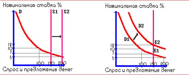 рис.1 Здесь представлен в форме графиков принцип действия денежного рынка.
