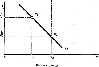 Кривая 1S имеет отрицательный наклон, потому что более высокий уровень ставки процента вызывает уменьшение инвестиционных расходов и последующее сокращение совокупного спроса, а затем и равновесного уровня дохода. Пологость кривой зависит от того, насколько чувствительны инвестиционные расходы к изменениям ставки процента, а также от величины мультипликатора. А при высокой чувствительности инвестиционных расходов оказывается что, чем больше величина мультипликатора, тем более пологой будет кривая 1S и тем больше будет изменение дохода, вызванное некоторым заданным изменением ставки процента.