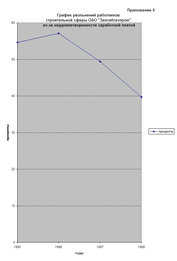 6. График увольнений работников строительного комплекса ОАО «Запсибгазпром» из-за неудовлетворенности заработной платой