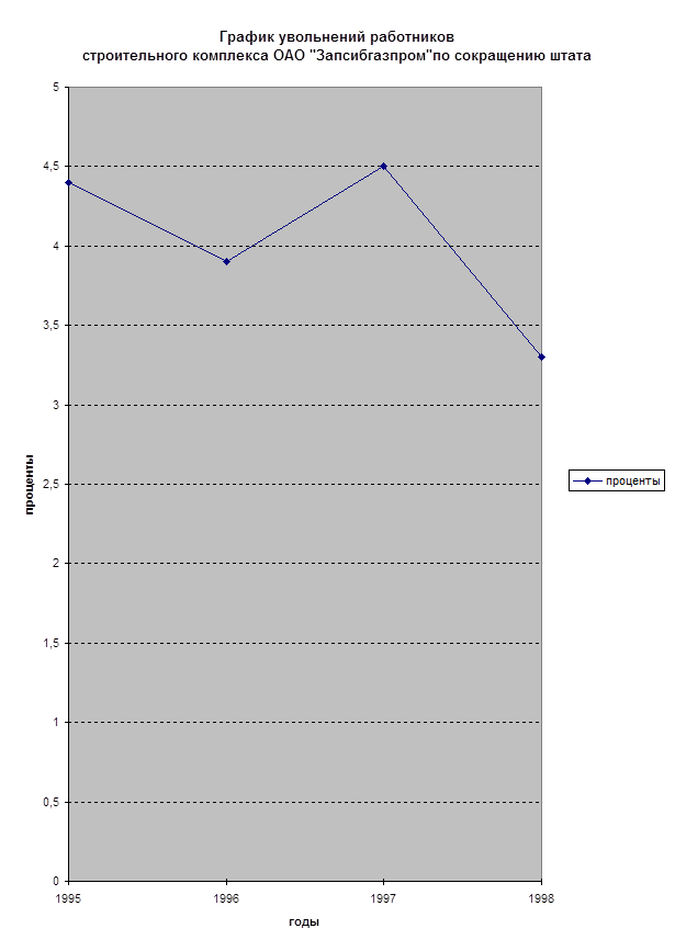 5. График увольнений работников строительного комплекса ОАО «Запсибгазпром» в 1995-1998 гг. по собственному желанию