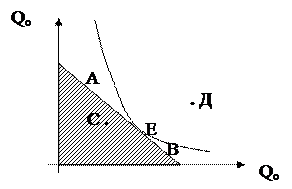 С точки зрения суммарной полезности потребителю безразлично, какой из наборов выбрать. Если по одной оси откладывать количество одежды (Qод), а по другой - количество обуви (Qоб), то получатся точки, через которые можно провести кривую, называемую кривой безразличия.