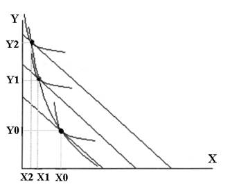 Для качественного товара Игрек (Y): Y1>Y0 и Y2>Y1 потребление растет, следовательно, наклон кривой Энгеля остается положительным.