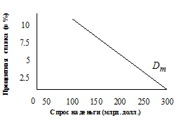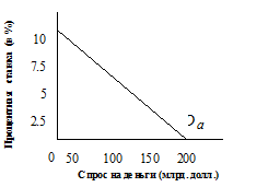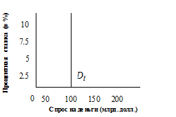 На рисунке 1а графически изображено отношение между спросом на деньги для сделок, и процентной ставкой. Поскольку спрос на деньги для сделок зависит от уровня номинального ВНП и не зависит от процентной ставки, он изображён в виде вертикальной прямой. Для простоты мы предположили, что необходимое для сделок количество денег не связано с изменением ставки процента.