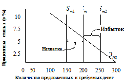 На рисунке 2 приведены типичные кривые предложения и спроса денег.