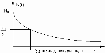 Определение: Период полураспада - это время в течении которого распадается половина исходного количества ядер.