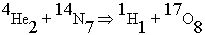 Первую ядерную реакцию, осуществил Резерфорд направляя пучок альфа-частиц (ядер гелия) на вещество содержащие ядра азота, в результате были получены изотопы кислорода и водорода: