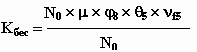 - формула четырех сомножителей. Kбес - характеризует среду в которой происходит размножение. Если Kбес < 1, то цепная реакция невозможна, ни при каких условиях. Если Kбес > 1, то можно подобрать размеры и массу среды таким образом, чтобы реакция была осуществима, поскольку от размеров и массы зависит количество нейтронов вылетающих за пределы среды и не участвующих в цепной реакции. Если обозначить за Pут - вероятность нейтрона избежать утечки из реактора то условием протекания реакции является: Кэф = Pут