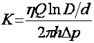 Проницаемость пористой среды определялась для радиальной фильтрации по формуле